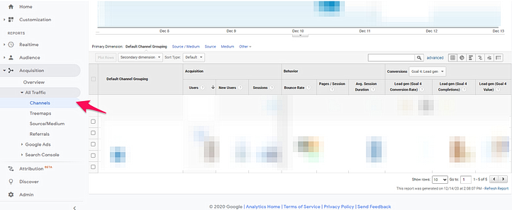 Visit the “Acquisition” section to learn more about your firm’s traffic sources. These include direct, organic, social, referral, and more. Analyze which ones generate the most traffic and conversions. Focus on these to optimize marketing efforts.