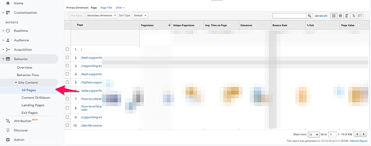 “All Pages” under “Behavior” will display the top pages on your website. We recommend optimizing these by applying lawyer marketing strategies and the marketing methods covered in this in-depth article. In particular, write better copy, optimize for search engines (especially Google search) and leverage testimonials (online reviews) to increase conversions and thus target clients.