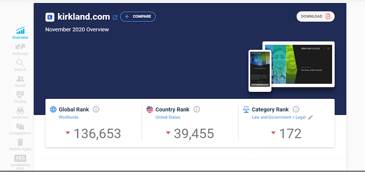 Alternatively, we suggest entering competitors into a tool like SimilarWeb. This competitive intelligence and analysis software will help your law firm uncover insights into competing practice areas.