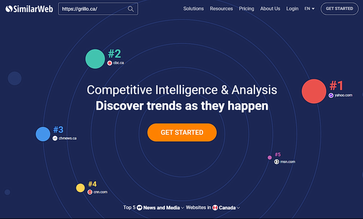 SimilarWeb displays a company’s traffic, website metrics, top landing pages, top keywords, and more. We recommend using this competitive intelligence to refine your practice’s marketing strategy, backlink profile, and advertising.